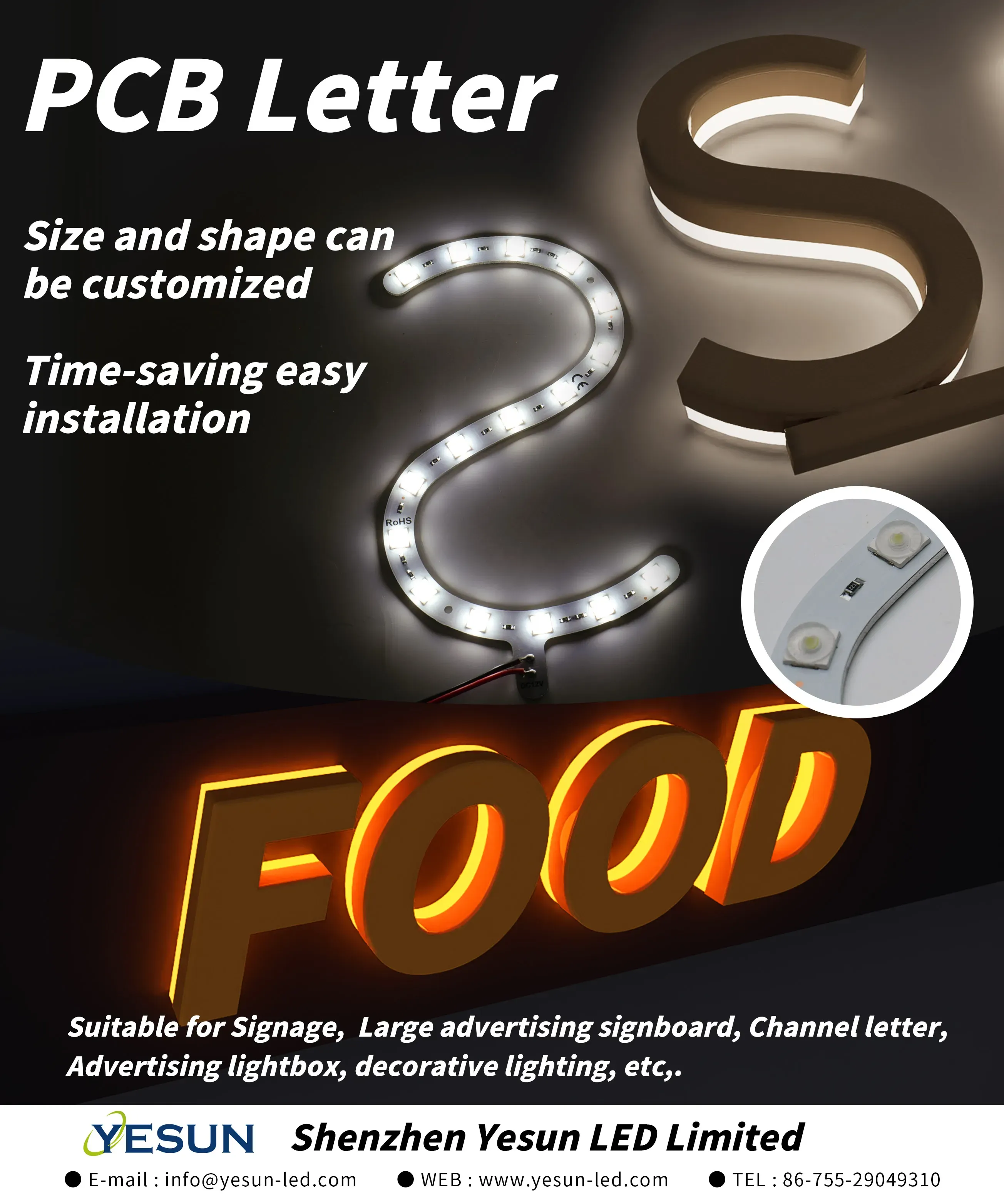 Custom PCB LETTER, installation directly