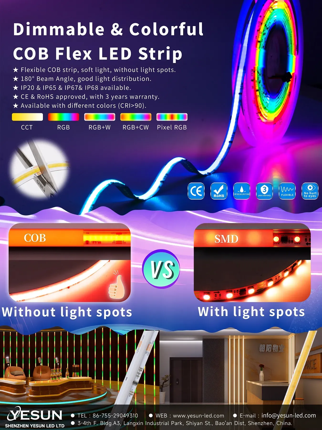 Dimmable & Colorful Flex COB LED Strip