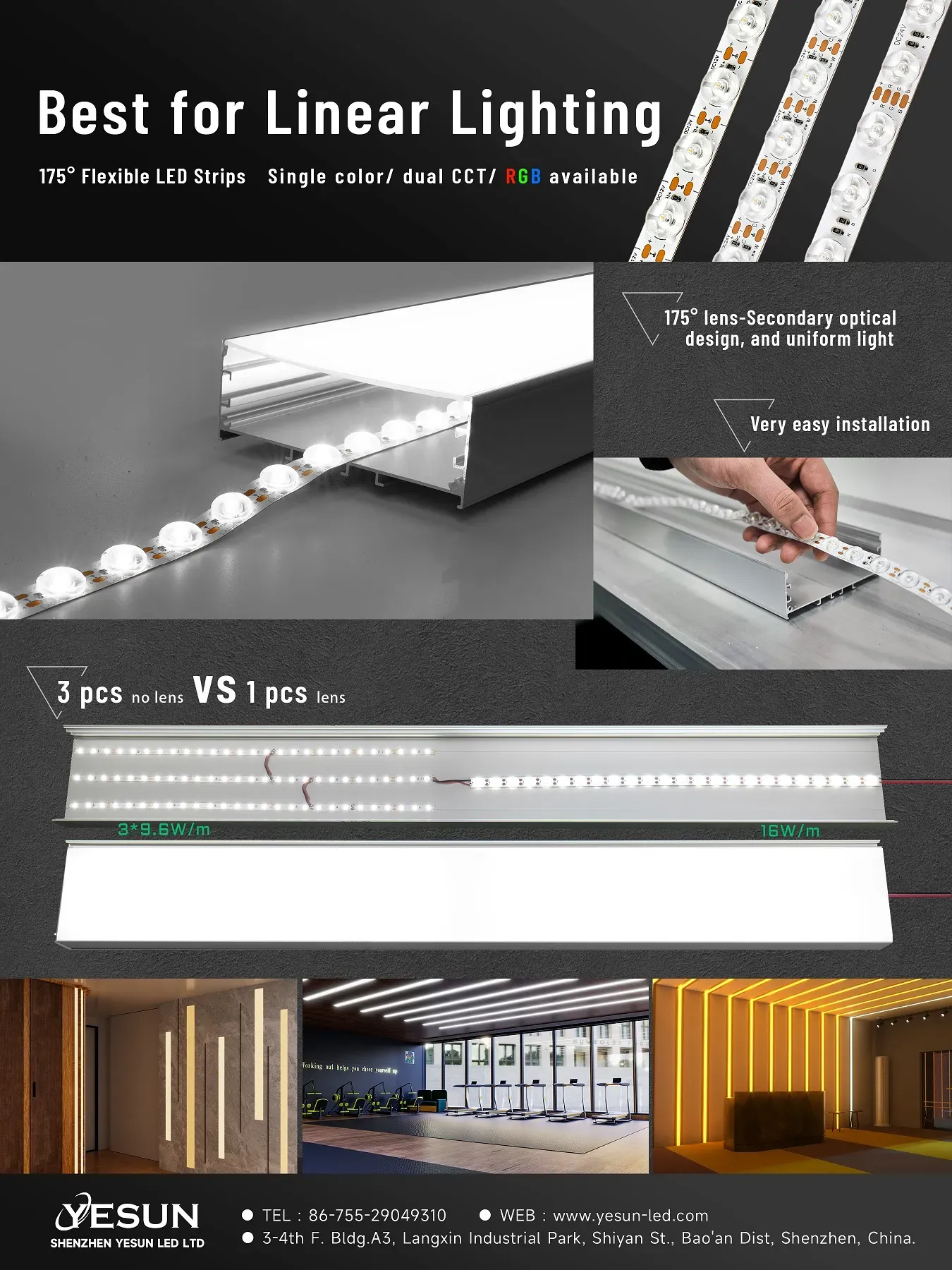Flexible Linear lighting with 175° lens for profile lighting