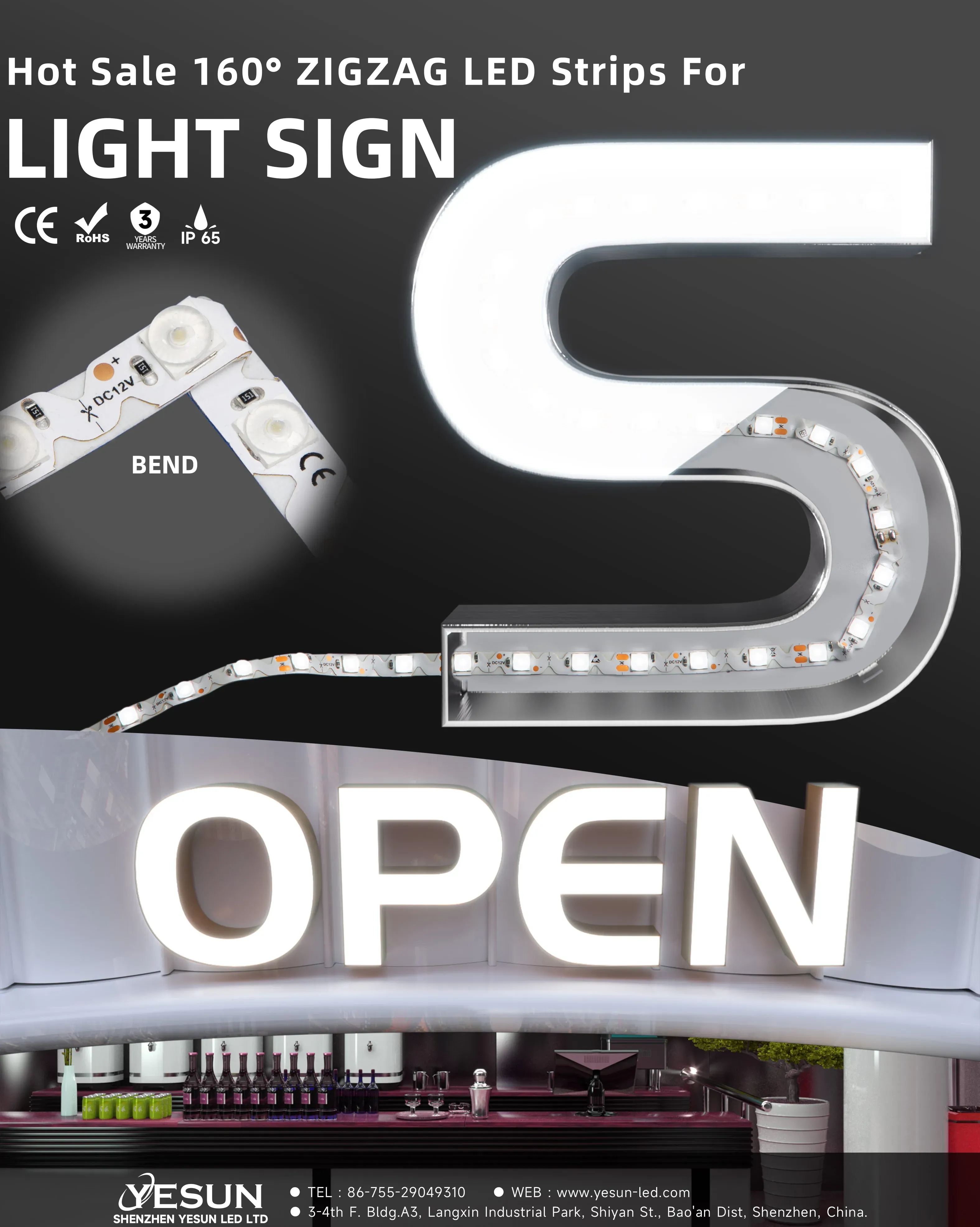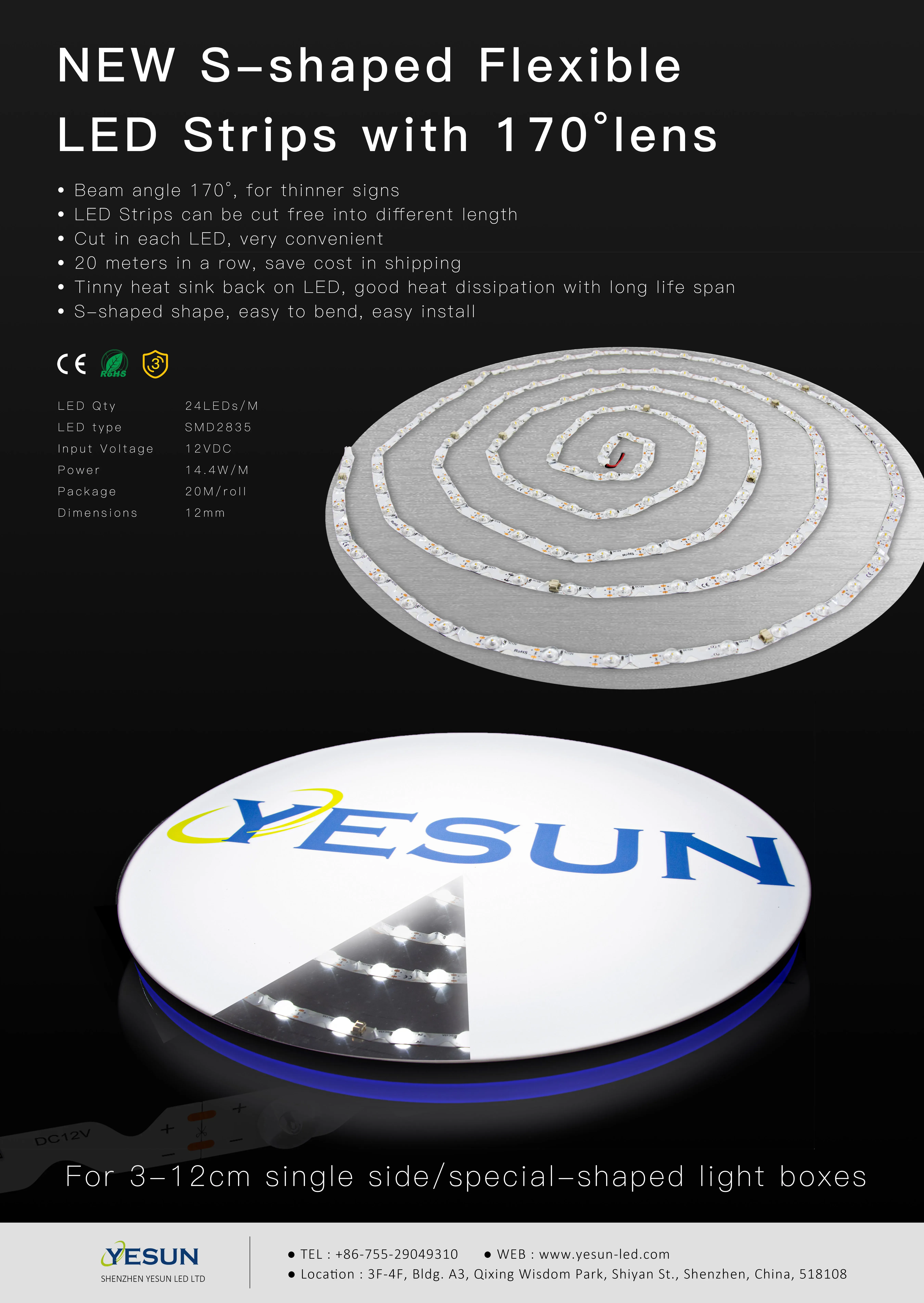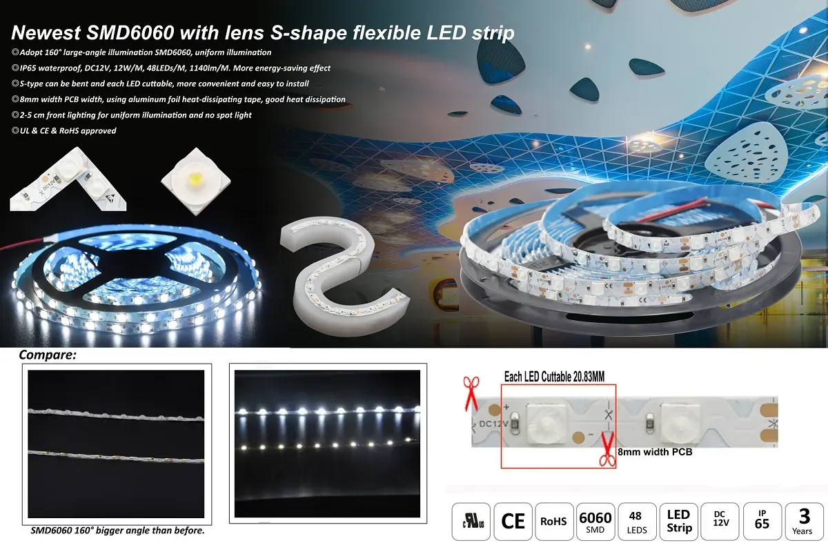IP65 S Shape LED STRIP with 160° lens, best uniform lighting ever